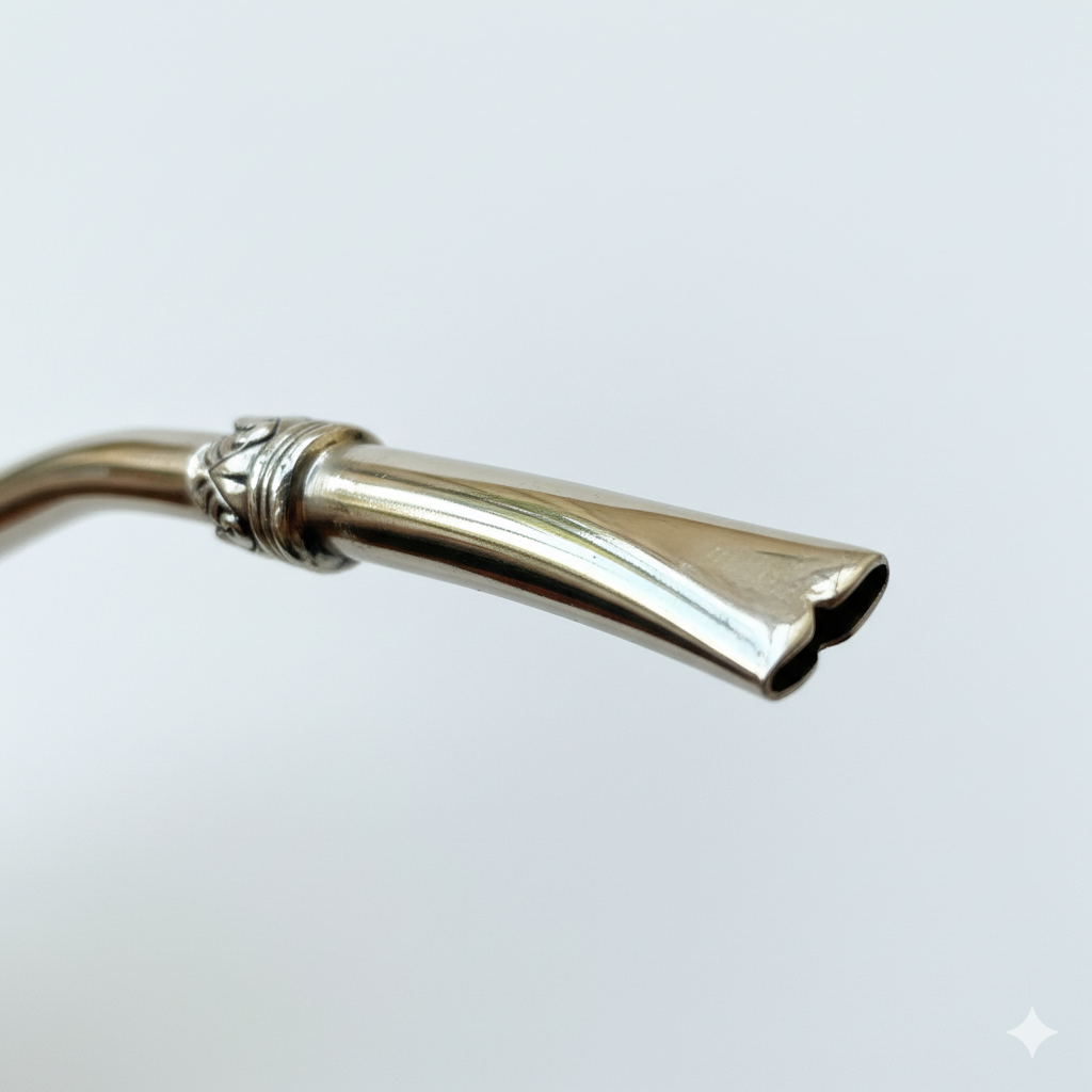 La Bombillon Corazón combina diseño y funcionalidad en cada detalle. Sus apliques de hoja de acanto no solo aportan carácter artesanal, sino que ayudan a disipar la temperatura del agua antes de llegar a tu boca, logrando un mate más equilibrado. El caño de 8 mm asegura una succión firme y pareja. El pico en caño de 9.52, limado y trabajado a mano, termina en una delicada forma de corazón, brindando una terminación cómoda y distintiva. Su coco en forma de pala facilita el retiro de la yerba y simplifica la limpieza.